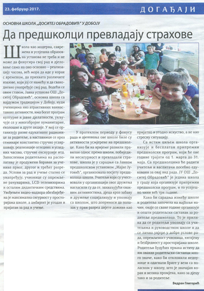 U „Prosvetnom pregledu“, najpoznatijem časopisu koji se bavi prosvjetnom tematikom i pitanjima obrazovanja i vaspitanja na teritoriji Srbije i Republike Srpske objavljen je članak o našoj školi kao primjeru dobre prakse i uspješnog rada. Ponosni smo na našu školu i rezultate koje smo postigli zajedničkim radom, trudom i predanošću. Nadamo se da ćemo i u budućnosti nizati samo uspjehe u radu i da ćemo ostati primjer uspješne i savremene obrazovne ustanove.