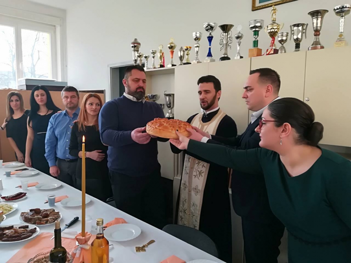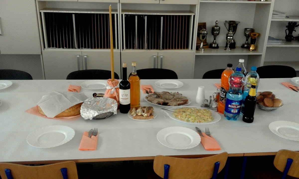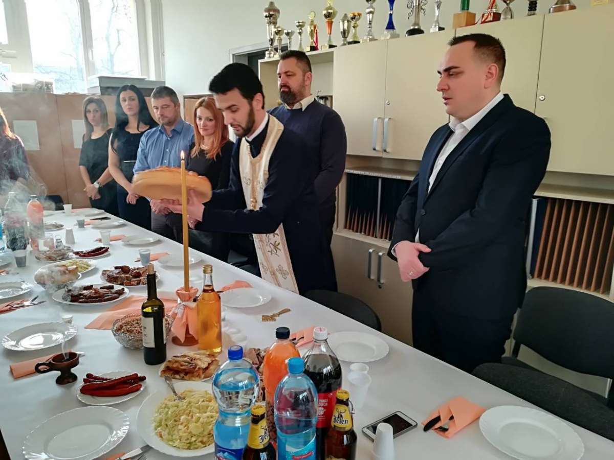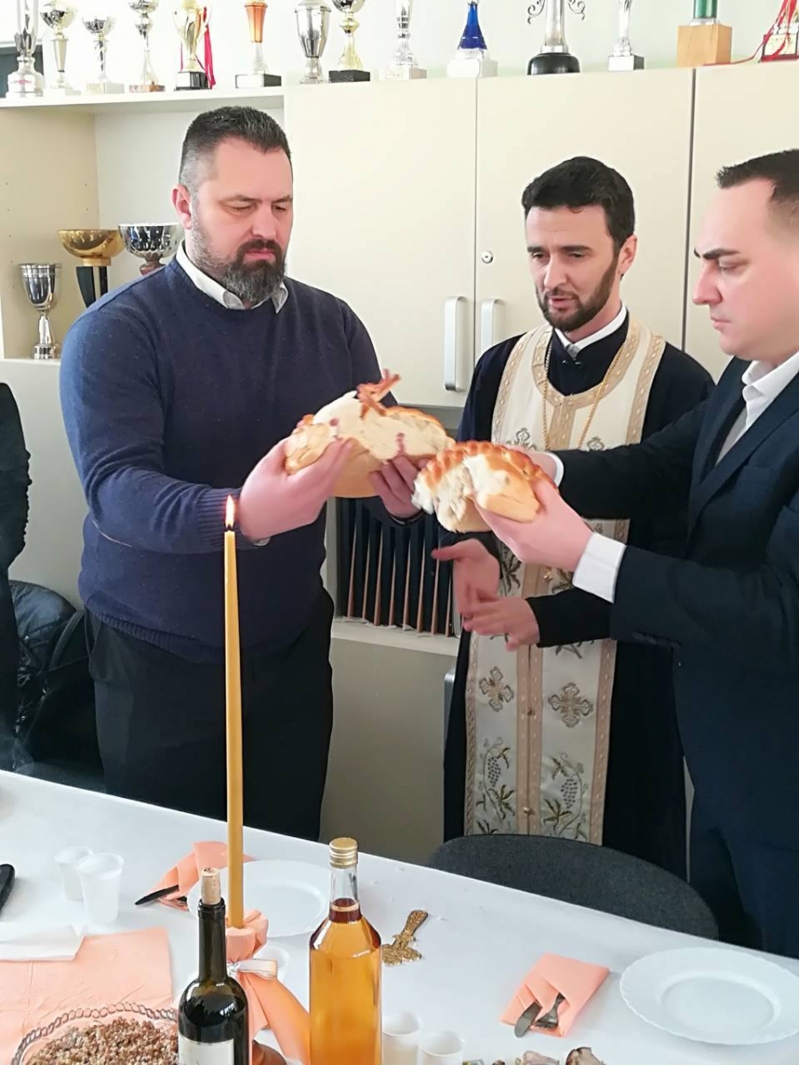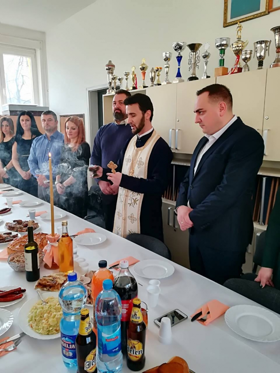 Po završetku priredbe obavljen je čin osvećenja slavskog kolača, pri čemu je pravoslavni sveštenik poželio radnicima i učenicima škole da duh Svetog Save živi među njima, osvjetljujući im put vrline, ljubavi, znanja i napretka. Ovaj čin obavljen je u školskoj zbornici, u prisustvu zaposlenih, kumova slave, učenika, kao i predstavnika Savjeta roditelja i Školskog odbora. Potom je upriličen i svečani slavski ručak.