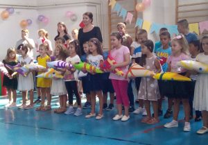 Kako bi im poželjeli dobrodošlicu i ohrabrili ih, stariji đaci, sada već učenici šestog razreda, pripremili su svojim novim drugarima prigodnu priredbu. Tom prilikom su im simbolično predali svoje učiteljice i svoje đačke klupe. Dobrodošlicu je prvačićima poželio i direktor škole, a zatim su ih pozdravile i njihove učiteljice, sa kojima su se uputili u svoje učionice.
