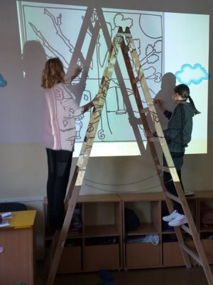Članovi naše likovne sekcije nastavljaju svojim talentom uljepšavati ambijent škole. Ovaj put odlučili su da sa svojom nastavnicom Bojanom Stojaković oslikaju mural u prostoriji Produženog boravka. Želimo im mnogo uspjeha u realizaciji ovog divnog umjetničkog projekta!