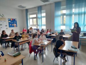Svjetski dan poezije obilježava se svake godine 21. marta. Svrha obilježavanja ovog dana jeste promocija čitanja i pisanja poezije u školstvu širom svijeta. Na taj način se proslavlja i jedan od najsavršenijih i najoriginalnijih oblika umjetničkog izražavanja. Tim povodom imali smo čast da na času srpskog jezika ugostimo našu pjesnikinju iz Doboja Radu Janjušić. Pjesnikinja se družila sa učenicima VI3, čitala im je svoju poeziju, a čitali su i oni njoj svoje stihove. Razgovarali smo o pisanju, važnosti čitanja i stvaranju čitalačkih navika. Učenici su sa pažnjom slušali čitanje pjesama, uključivali su se u razgovor, pitali su ono što ih interesuje, a posebno ih je zanimalo kako se postaje pjesnik. Bio je to jedan zanimljiv poetski čas prepun razdraganih, veselih i pametnih lica i pjesmica.