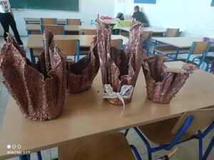 Na današnjem času članovi cvjećarske sekcije ručno su izrađivali saksije za cvijeće od starih peškira i cementa. Zatim su sprejevima farbali saksije u boju zlata i na kraju ih ukrašavali ukrasnim trakicama. Saksije su spremne za sadnju cvijeća koja će se realizovati na sljedećim časovima sekcije.