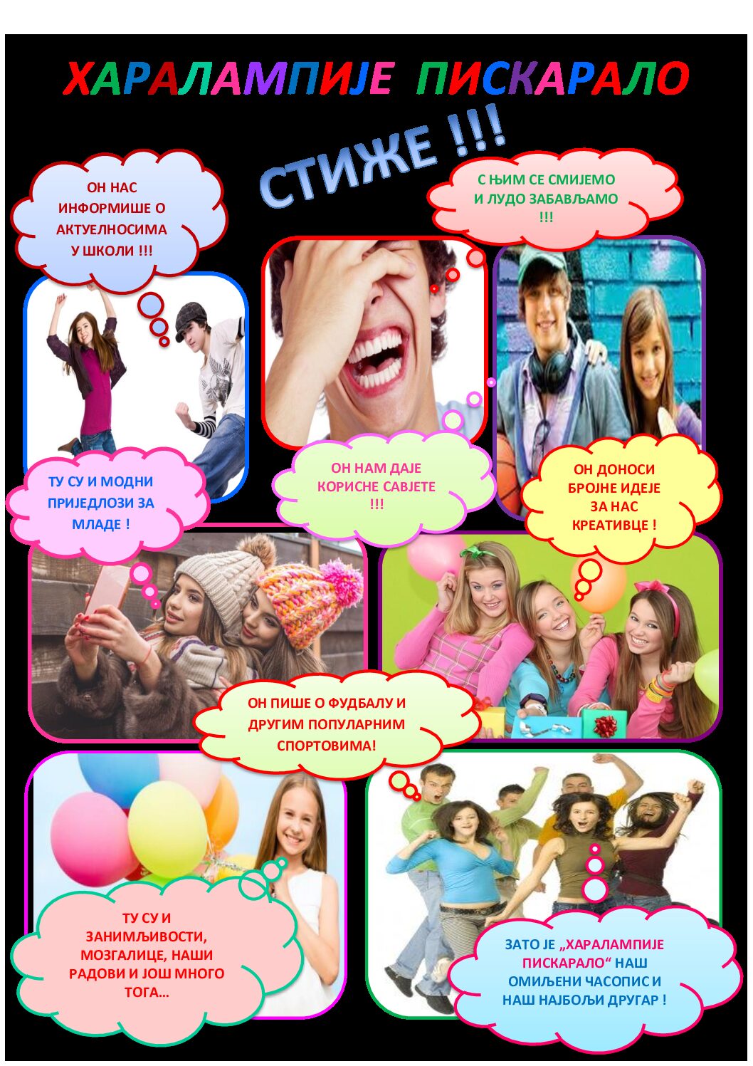Dragi učenici, na radost naših učenika i nastavnika obaviještavamo vas da je izašao 11. broj školskog časopisa „Haralampije Piskaralo“. U ovom broju naši članovi novinarske sekcije potrudili su se da nam pripreme raznovrsne sadržaje i veoma korisne ideje i savjete. Tu su i zabavne rubrike da nas nasmiju, ali i literarni i likovni radovi naših vrijednih i kreativnih učenika. Cilj našeg časopisa i jeste prvenstveno promocija uspjeha i stvaralaštva naših učenika, te informisanje o različitim aktivnostima koje se realizuju u našoj školi.