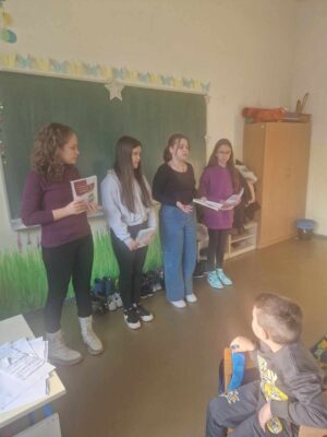 U posljednjoj sedmici prvog polugodišta članovi recitatorsko-literarne sekcije u predmetnoj nastavi posjetili su svoje najmlađe drugare, učenike prvog razreda, i organizovali zajedničko praznično druženje, koje su obilježile razne novogodišnje recitacije.