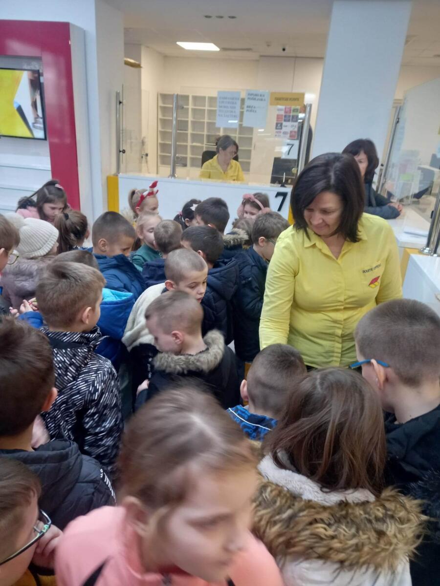 Danas su naši učenici iz produženog boravka iskoristili ugodno i lijepo vrijeme, te su prošetali do najbliže pošte i svi zajedno poslali svoja pisma Djeda Mrazu. To je ujedno bila i prilika da naši učenici posjete poštu, razgovaraju sa ljubaznim osobljem o poslovima koji se obavljaju u pošti. Zahvaljujemo sa na prijatnom dočeku i slatkišima koje smo dobili.