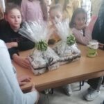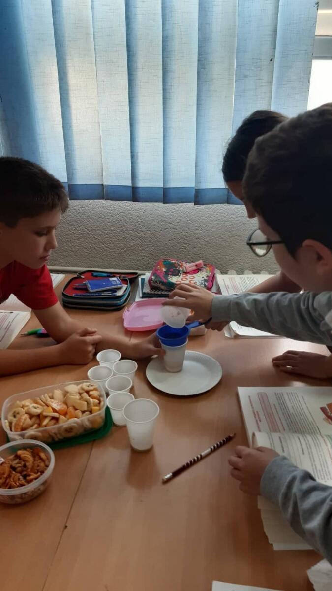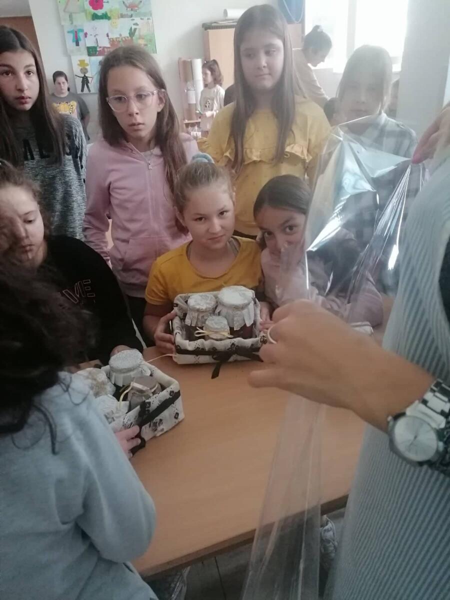 Učenici V3 zajedno sa svojom učiteljicom odlučili su da na času prirode i društva primjeni metodu praktičnog rada kako bi učenicima što bliže predstavila određene pojave u prirodi. Na zanimljiv način obrađen je nastavni sadržaj o smjesama i različitim načinima njihovog razdvajanja – prosijavanje, odlivanje, cijeđenje i isparavanje. Učenici su imali zadatak da donesu sastojke u čvrstom i tečnom stanju. Prvo su od sastojaka u čvrstom stanju (razne vrste voća) napravili voćnu salatu koju su kasnije pojeli za užinu. Zatim su miješali po dva ili više sastojaka u različitim odnosima (brašno, mljevena paprika i kakao), te su došli do zaključka da sastojci u smjesama zadržavaju svoja svojstva i mogu se miješati u različitim odnosima. Kako bi dokazali postupak prosijavanja pomiješali su dva različita materijala u čvrstom agregatnom stanju (brašno i biber), te uzeli cjediljku i prosijali. Primijetili su da brašno prolazi kroz otvore na situ cjediljke, a zrna bibera ostaju. Za postupke odlivanja i cijeđenja koristili su pijesak, vodu i susam, a za postupak isparavanja pomiješali su kuhinjsku so i vodu, te ostavili na radijatoru kako bi voda isparila.