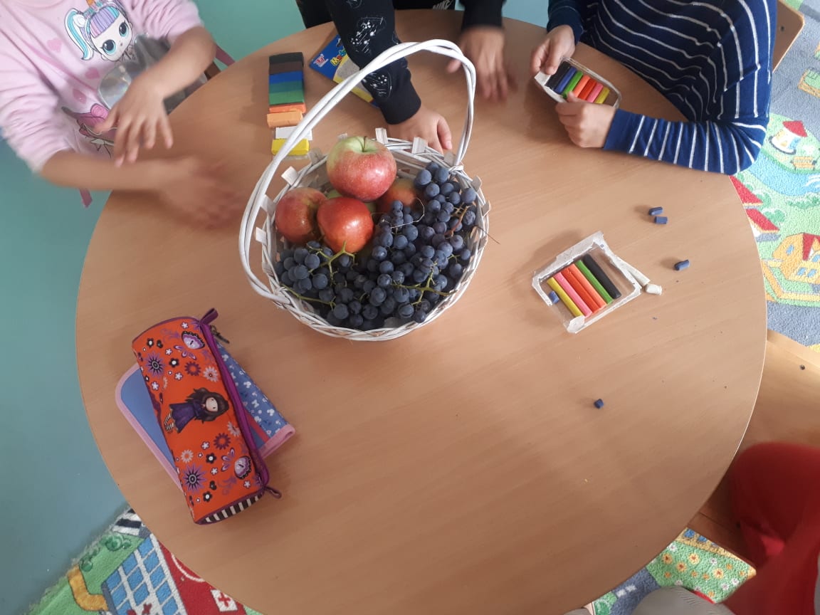 Novo godišnje doba ne samo da je zvanično stiglo i ušetalo se u naš grad, već se njegova obilježja mogu vidjeti i u prostorijama naše škole. Inspirisani jesenjim čarolijama, učenici I-1 pravili su od plastelina voće koje dozrijeva u jesen. Takođe, imali su priliku i da se zaslade domaćim grožđem i jabukama.