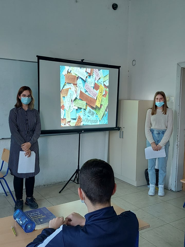 Tim povodom učenice IX-2 odlučile su da pridaju važnost ovoj manifestaciji. Manar Devedzić i Ena Mehičić su na času srpskog jezika pripremile zanimljivu prezentaciju o važnosti stranih jezika i razlozima zbog kojih bi trebali učiti strane jezike. Takođe, predstavile su svojim drugarima neke od zanimljivosti o pojedinim evropskim jezicima.