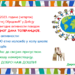 U četvrtak, 16. novembra 2023. godine u našoj školi biće organizovane prigodne aktivnosti u cilju obilježavanja Međunarodnog dana tolerancije.