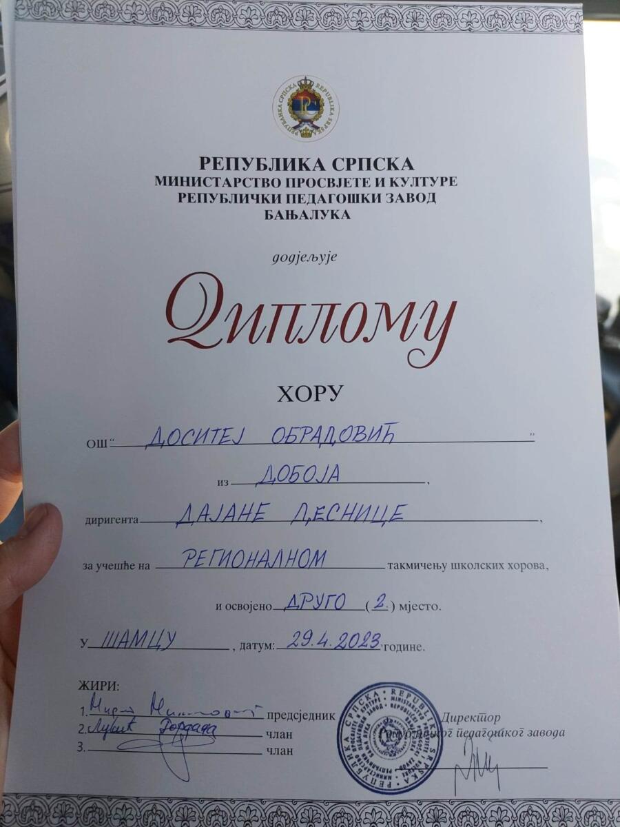 DRUGO MJESTO ŠKOLSKOG HORA NA REGIONALNOM TAKMIČENJU