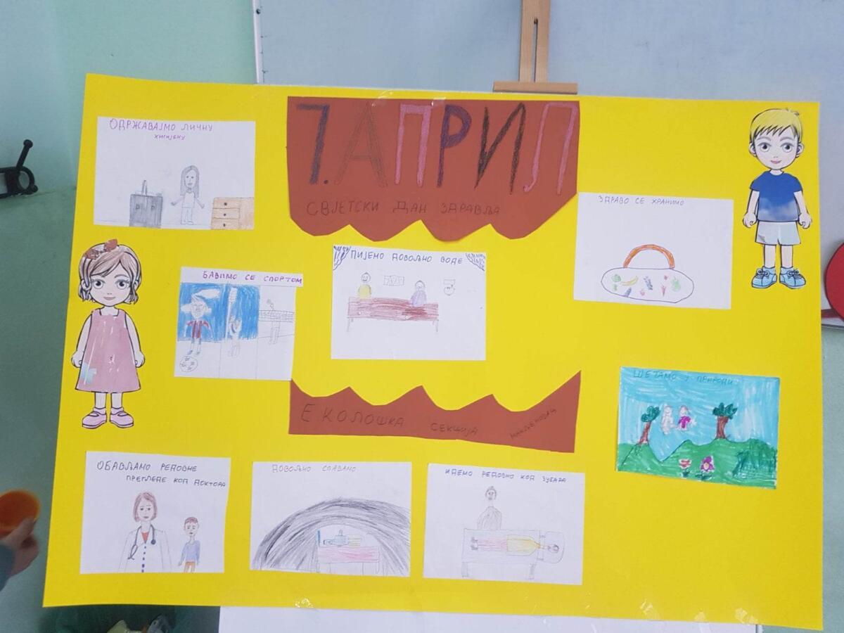 Svjetski dan zdravlja obilježava se svake godine 7. aprila sa ciljem da se ukaže na značaj održavanja, prevencije i čuvanja zdravlja, kao i na važnost održavanja zdravih životnih navika. Tim povodom naši članovi ekološke sekcije iz PO Makljenovac pripremili su niz aktivnosti kako bi se svi zajedno prisjetili značaja pravilne ishrane i higijene. Najprije su pripremili zanimljivo predavanje o zdravlju, a zatim je uslijedila izrada panoa na temu zdravlja, te su tako svoje današnje aktivnosti zaokružili jednom malom izložbom u prostorijama svoje škole. Takođe, pripremili su i čajanku i svi zajedno učestvovali su u debati, koja je bila u funkciji učenja i sticanja novih znanja.