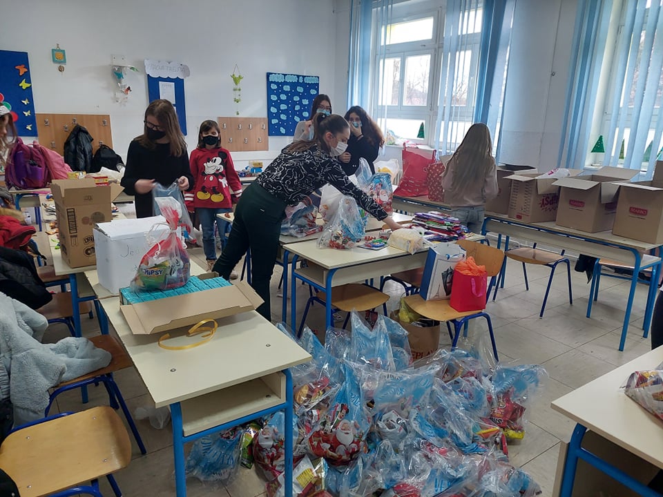 Kad su djeca u pitanju, pokloni imaju veliki značaj, a posebno u vrijeme praznične atmosfere. Savjet učenika i Podmladak Crvenog krsta organizovali su i ove godine humanitarnu akciju pod nazivom „Jedno dijete, jedan slatkiš“, te sakupili 140 paketića kako bi pred nadolazeće praznike obradovali drugare slabijeg imovinskog statusa. Takođe, paketići su uručeni i izuzetno talentovanim i nadarenim učenicama naše škole.