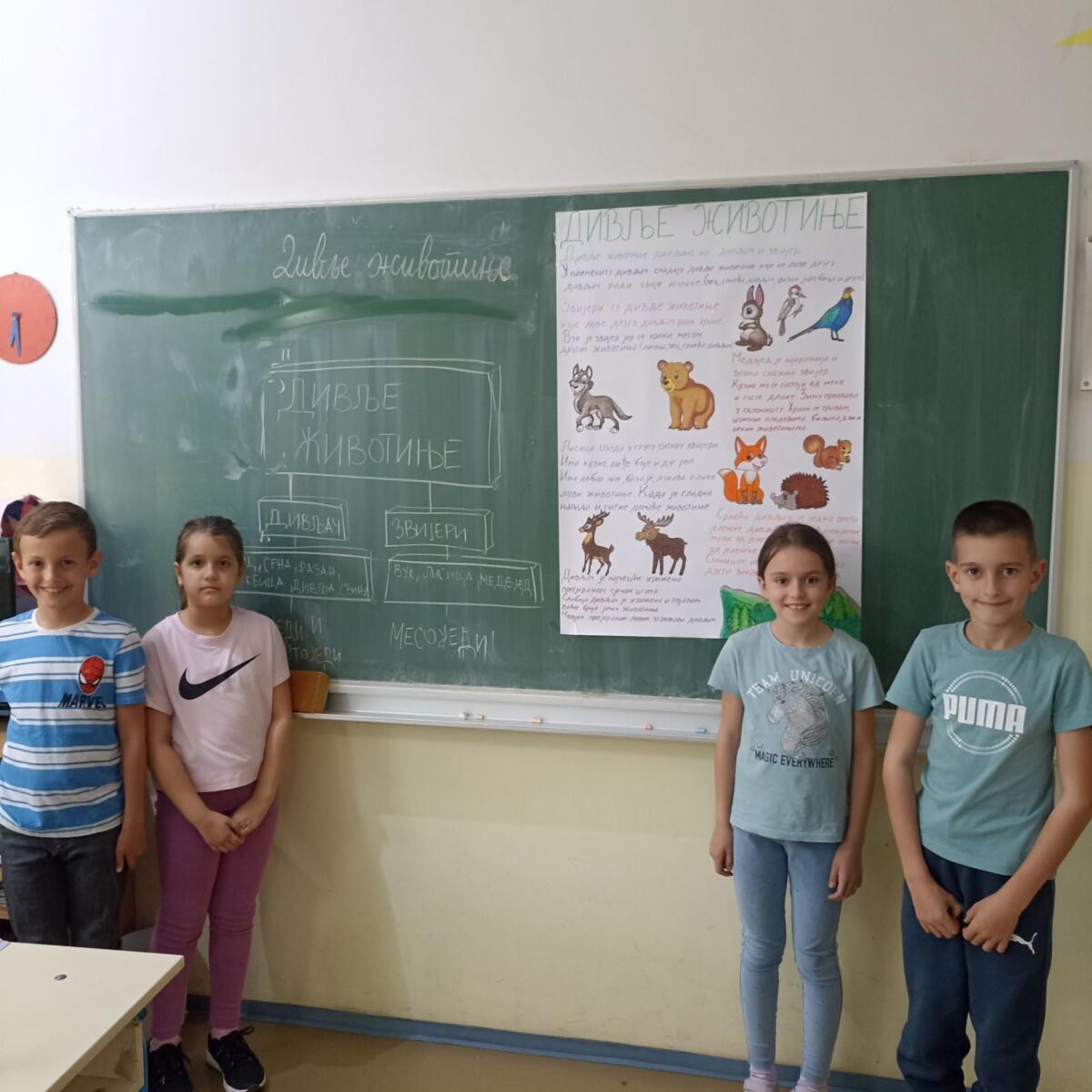 Učenici III1 i III3 su ove sedmice iz predmeta moja okolina izučavali nastavni sadržaj u vezi divljih životinja, te su to uz pomoć svojih učiteljica povezali sa nastavnim sadržajima iz srpskog jezika. Najprije su na času moje okoline učili o osobinama, podjeli i ishrani divljih životinja, a zatim su na času srpskog jezika čitali priču „Razbojnik Packo“ i u njoj pronalazili sve te osobine divljih životinja, te se prisjetili i prethodno obrađenih pravopisnih pravila.