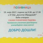 Dragi učenici, roditelji i prijatelji škole, 19. maja 2017. godine (petak) od 9.30 do 17.30 u JU OŠ “Dositej Obradović” biće otvoren Sajam učeničkih radova. Kupovinom učeničkih rukotvorina unapređujemo našu školu!