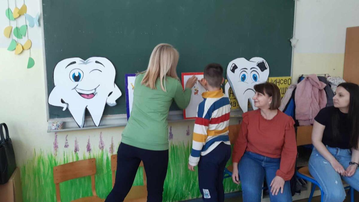 Povodom obilježavanja Dana oralnog zdravlja, Savjet učenika naše škole je u saradnji sa JZU Dom zdravlja Doboj organizovao juče predavanje, radionicu i pregled zubića za učenike prvog i drugog razreda. Predavanje, radionički rad i pregled zubića realizovali su dječiji stomatolozi Anita Kalajdzić i Dragana Lakić zajedno sa svojim timom iz JZU Dom zdravlja Doboj. Kroz radionički rad stomatolozi su upoznali učenike sa hranom koja je važna da bi zubi bili zdravi, kao i sa hranom koja je štetna za zube. Zatim su dobili zadatak da oboje bojanku zdravog zuba i zuba sa karijesom, kao i hrane koja dovodi do pojave karijesa. Na praktičan način učenicima je pokazano kako se održava higijena zuba i usta. Imali su priliku da na modelu vilice demonstriraju pravilno pranje zuba. Stomatolozi su ukazali na važnost redovnog pregleda zuba, te su pred kraj svoje posjete izvršili pregled zubića učenicima koji su to željeli, a svaki učenik je dobio diplomu za blistav osmijeh.