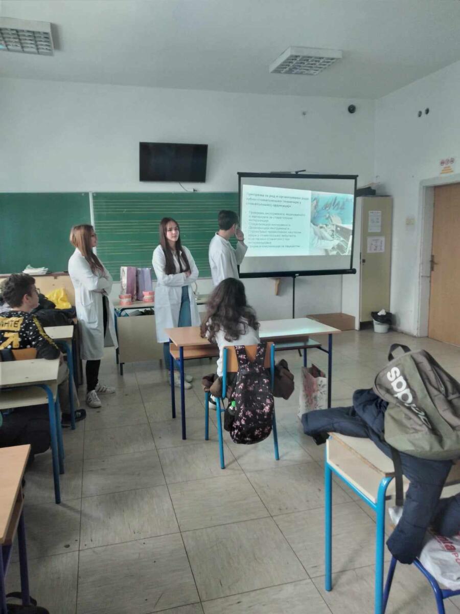 Prošle sedmice našu školu posjetili su učenici Medicinske škole, koji pohađaju smjer zubno-stomatološki tehničare u pratnji svoje profesorice Bojane Aleksić. Oni su održali zanimljivo i korisno predavanje našim učenicima devetog razreda na temu „Oralna higijena“. Naši učenici imali su priliku da se bolje upoznaju sa zanimanjem stomatološki tehničar, ali i da se prisjete nekih važnih pravila u održavanju oralne higijene kao što su tehnika pranja zuba, pravilan izbor četkice za zube i slično. Nakon održanog predavanja učenici su imali priliku da praktično kroz vježbu primijene znanje koje su im prenijeli učenici Medicinske škole.